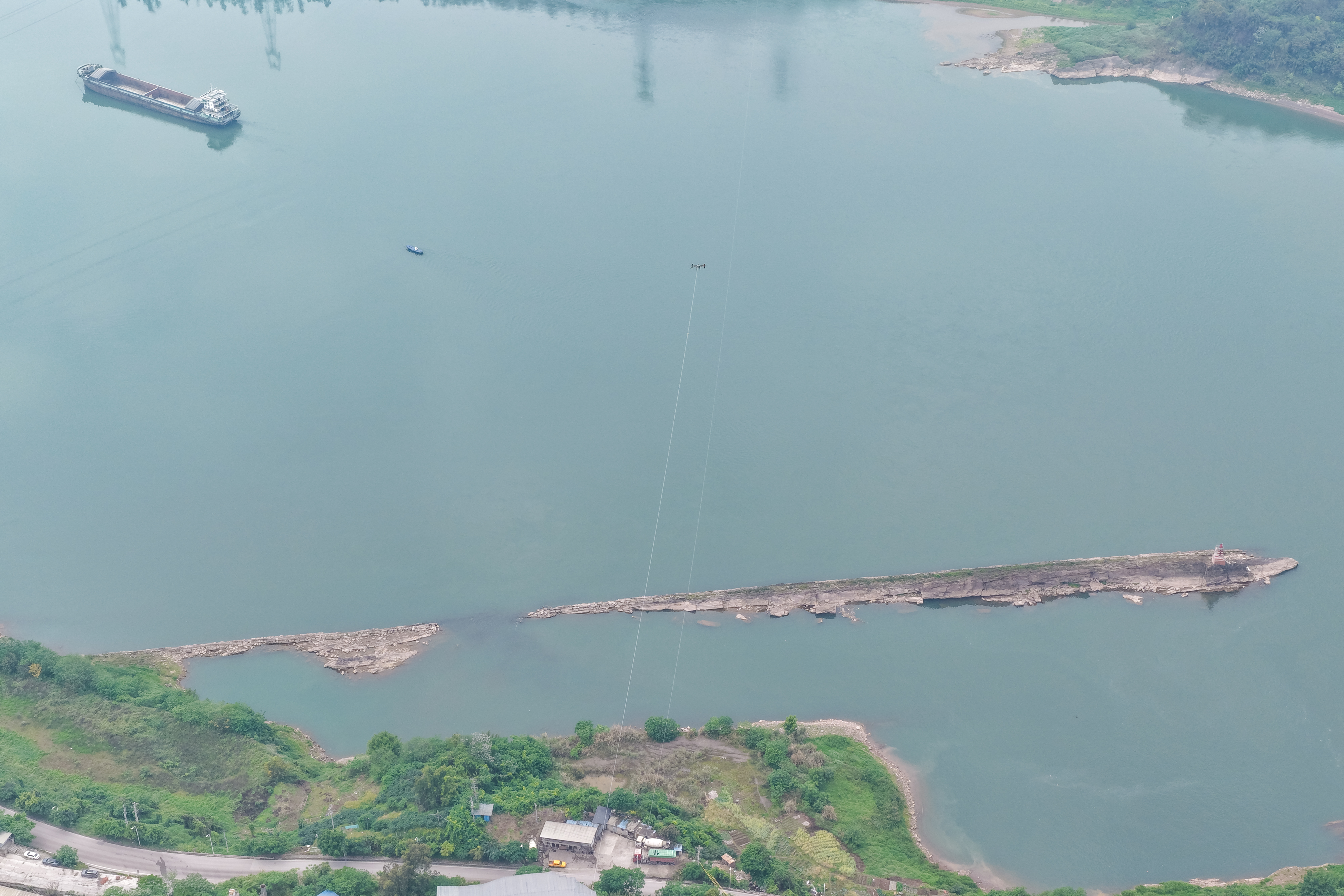 4月11日下午,在位于重庆市江津区珞璜镇的新玉500千伏输变电工程(线路部分)跨长江放线作业现场,国网重庆电力的工作人员使用大载重无人机搭载四段投掷器,牵拉导引绳顺利跨越长江。