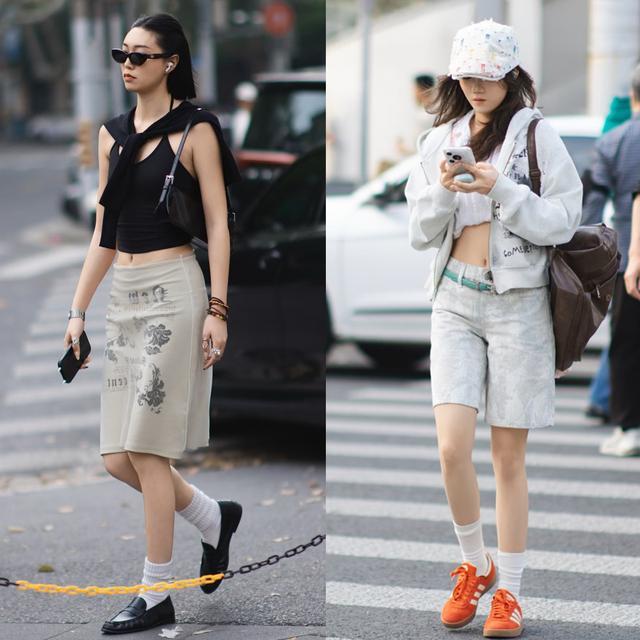 “露胯”下装本身就比基础款更有设计感,在选款上,不必拘泥于裤子或裙子,都可以大胆尝试,比如短裙、短裤或热裤等,都能营造强烈的时尚感。